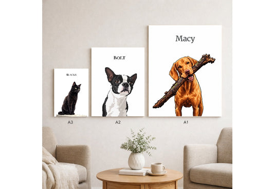 Show off you hand-curated vector art and custom PAWTRAIT design. Transform your pet's photo into your personal and unique high quality canvas masterpiece.
